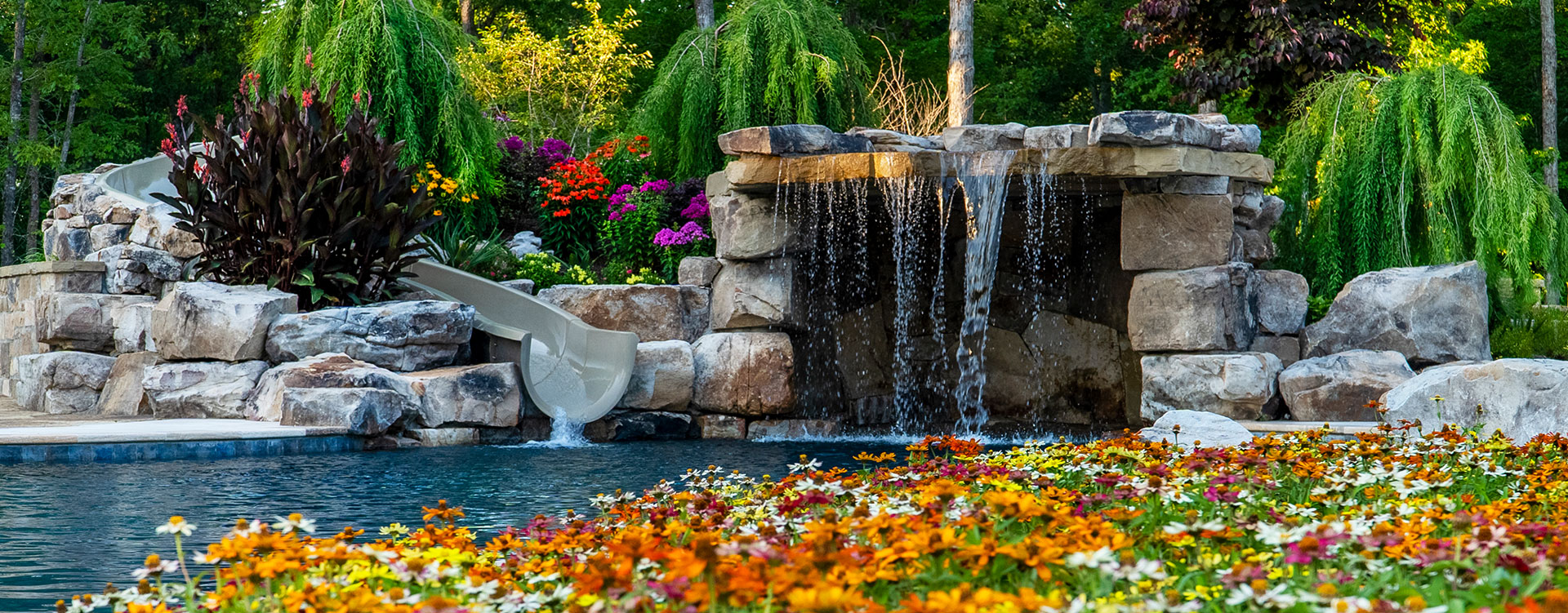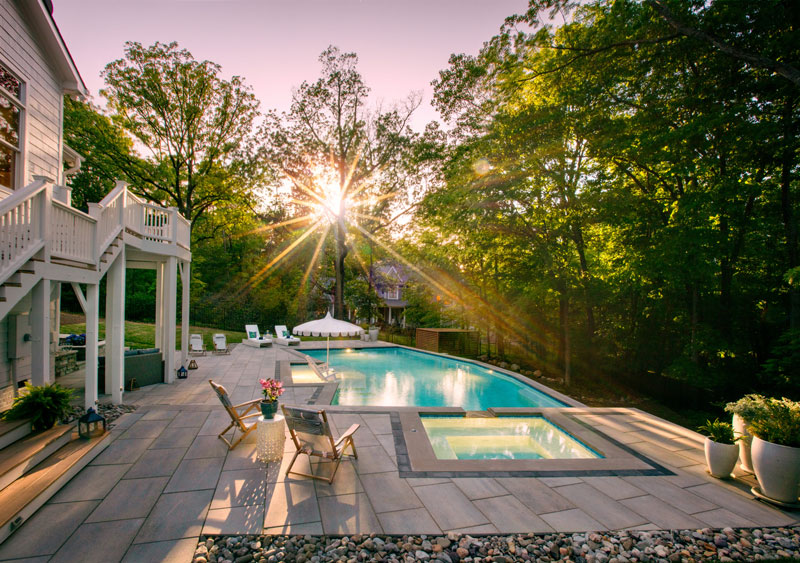 "We always loved our backyard because it was a large, secluded, peaceful, flat grassy area with mature beautiful landscaping. We worried how putting in a pool would change the space, what we might lose. Ultimately our desire for a pool for our family was greater than our personal concern. It’s still hard to process the extent the pool has elevated the backyard and our happiness. It now looks and feels like a private luxurious resort, a secluded retreat, a personal oasis where we literally swim in and are surrounded by luxury. Changing the outdoor space completely changed our entire home, and the way we use it. Our oasis has become an extension of our home. The favorite room, the always perfect spot regardless if it's a hot summer day or cool fall morning, the space you want to go to for more reasons than we ever would have imagined (relaxing in the pool, dinner with the perfect ambience, reading a book, peaceful morning coffee, sitting and listening to the waterfalls as the rush of life is forgotten), the place we open our door and literally step into our dreams."