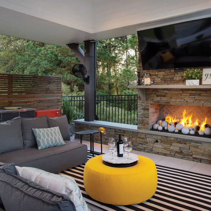 In North Carolina, it can be a challenge incorporating modern structures and elements to a very rustic and traditionally “NC Style.” When ONS arrived, the pool and walls around the pool were already installed, so we had to get creative in how to incorporate a modern cabana. By keeping the bar and fireplace in the same stone but pulling in modern elements such as a modern aluminum grilling cabinet and porcelain tile flooring we achieved a beautiful synchronicity.